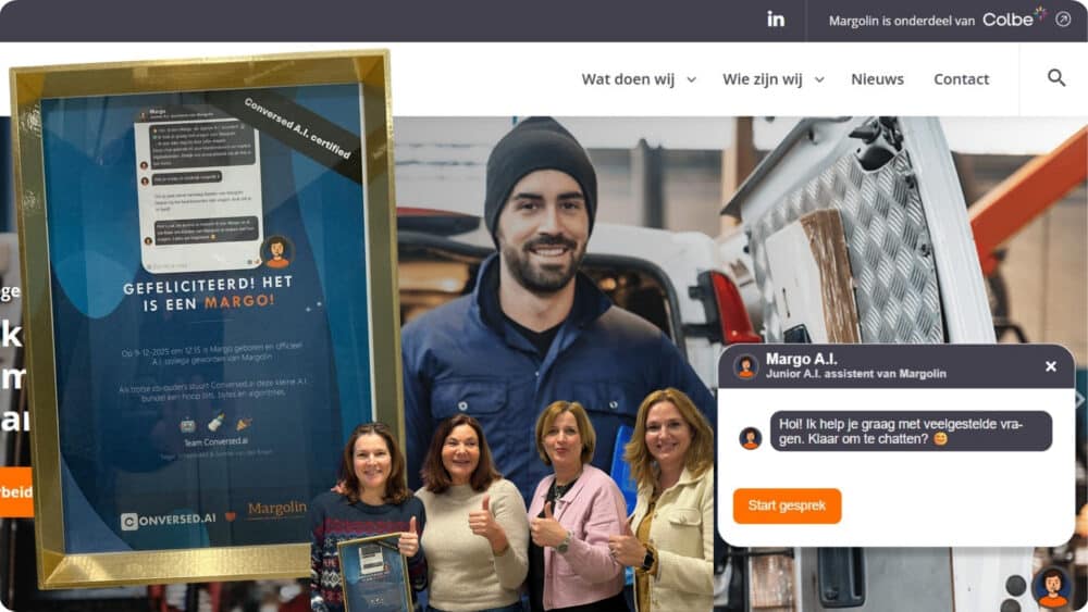 Wie nu een bezoek brengt aan www.margolin.nl, wordt meteen verwelkomd door onze gloednieuwe chatbot MARGO! In samenwerking met Conversed.AI hebben we MARGO ontwikkeld tot een slimme, vriendelijke assistent die klaarstaat om iedere bezoeker snel en soepel naar de juiste informatie te begeleiden. Of je nu op zoek bent naar specifieke diensten, contactgegevens of gewoon even wilt rondkijken, MARGO helpt je direct op weg. We zijn ontzettend trots op onze nieuwe assistent en nodigen iedereen uit om MARGO zelf uit te proberen!